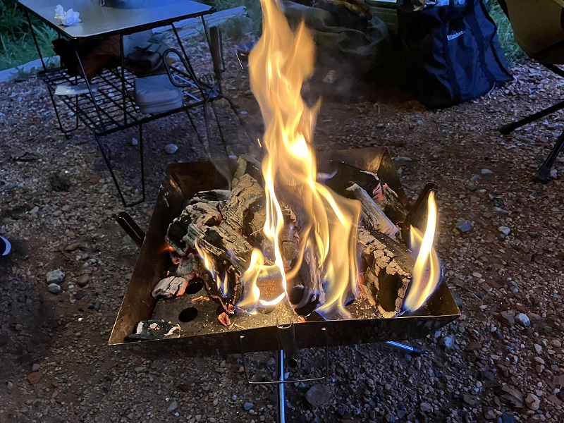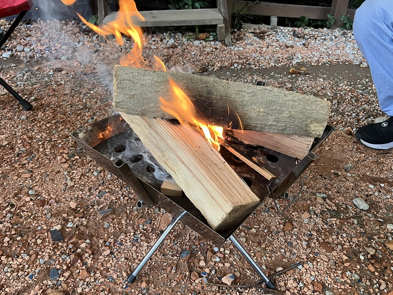 日が落ちてきたので、焚き火スタートです!